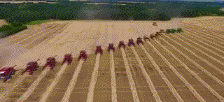 ▲大动作,十几台联合收割机一起工作!场面壮观!