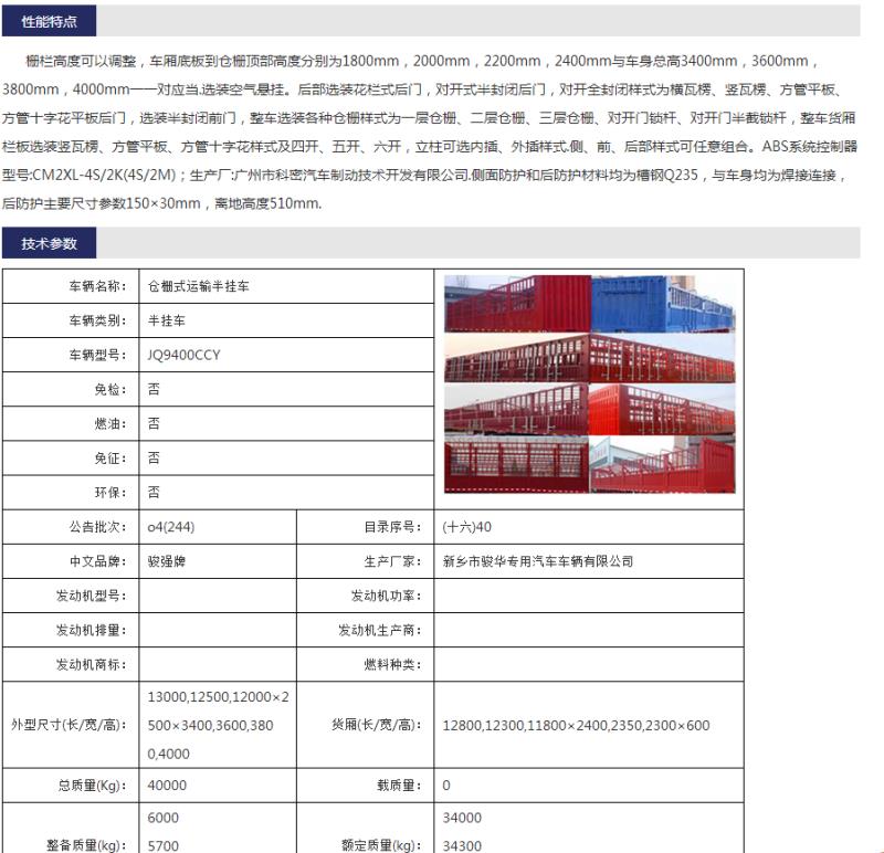 仓栅式运输半挂车