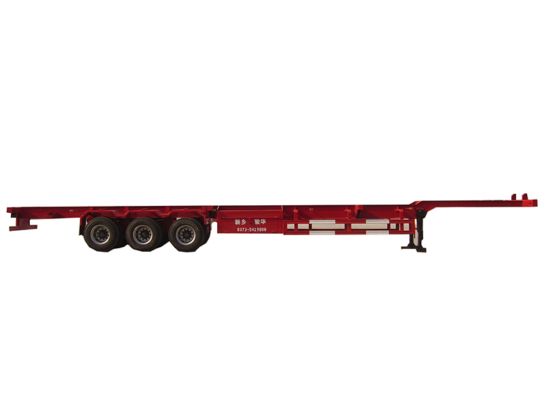 集装箱半挂车是载运集装箱的专用运输挂车。集装箱运输发展初期,因集装箱载重量较小,数量不大,多用普通载货汽车载运。20世纪60年代以来,随着集装箱运输的迅速发展,各国相继研制成专门运输集装箱的汽车。集装箱挂车装载部位的尺寸按标准集装箱尺寸确定,并在相应于集装箱底部四角的位置上设有固定集装箱的扭锁装置。载运集装箱的专用运输挂车。在装载部位的四角设有固定集装箱的扭锁装置。通常采用半挂式、全挂式和双挂式,以半挂式为多。半挂式又有平板式和骨架式之分,前者有平板货台,也可用来装运普通长大货物;后者无货台,集装箱装到底盘骨架上,由扭锁装置固定成为半挂车的强度构件。