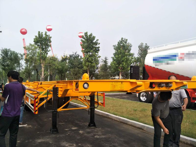 骨架式集装箱运输车是集装箱运输半挂车车架的一种还有一种是平板式。