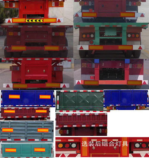 该车应在侧面和后部安装车身反光标识,自卸方式为侧卸.选装侧面样式,每边开数可选5开扇和6开扇,立柱可选内插和外插。整车栏板选装竖瓦楞、横瓦楞、方管平板、方管十字花样式。选装前部和后部样式。ABS系统控制器型号:CM2XL-4S/2K(4S/2M);生产厂: 广州市科密汽车制动技术开发有限公司.侧后防护所用材料材质:Q235.与车身为焊接连接.后防护断面尺寸(mm):160×30,离地高度为550mm. | |||